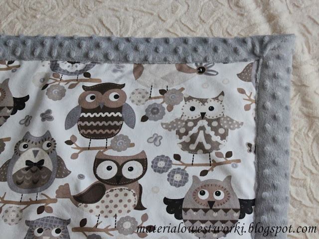 Jakiś czas temu miałam okazję uszyć komplet do łóżeczka dla małego Tymka. W skład zestawu wchodził ochraniacz na szczebelki, kocyk i płaska podusia. Była jeszcze maskotka sowa, niestety nie została uwieczniona na zdjęciu.